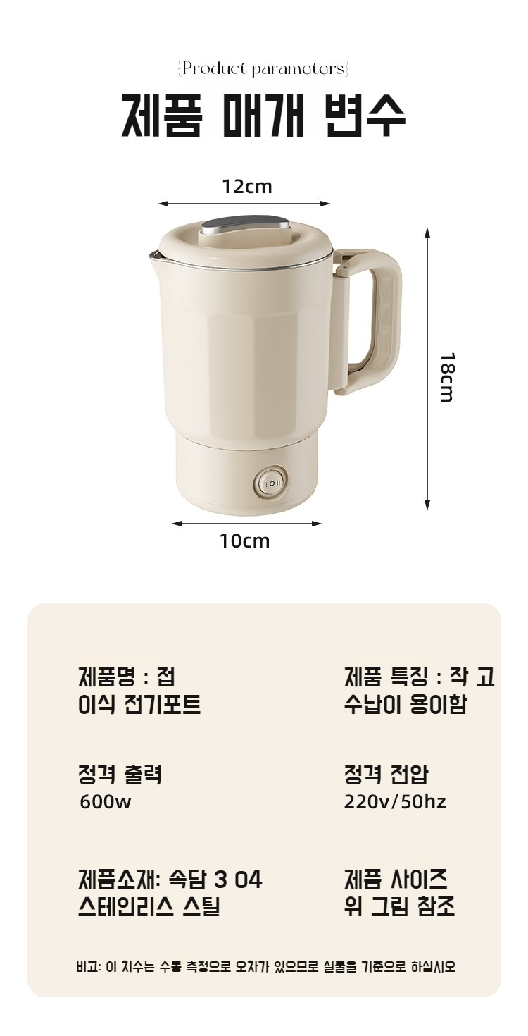 접이식 휴대용 소형 전기포트 스텐접이식포트 호텔 휴대용포트